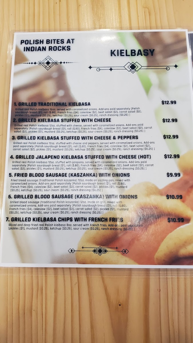 Grilled Polish Kielbasa 12oz. served with caramelized onions, mustard, ketchup, Polish sourdough bread, rolls or French fries.