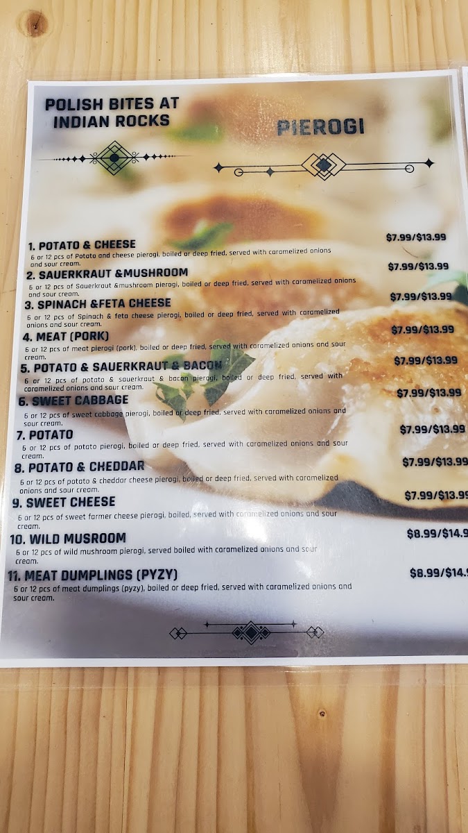 Potato&Cheese/Sauerkraut&Mushroom/Spinach&FetaCheese/Meat(Pork)/Potato&Sauerkraut&Bacon